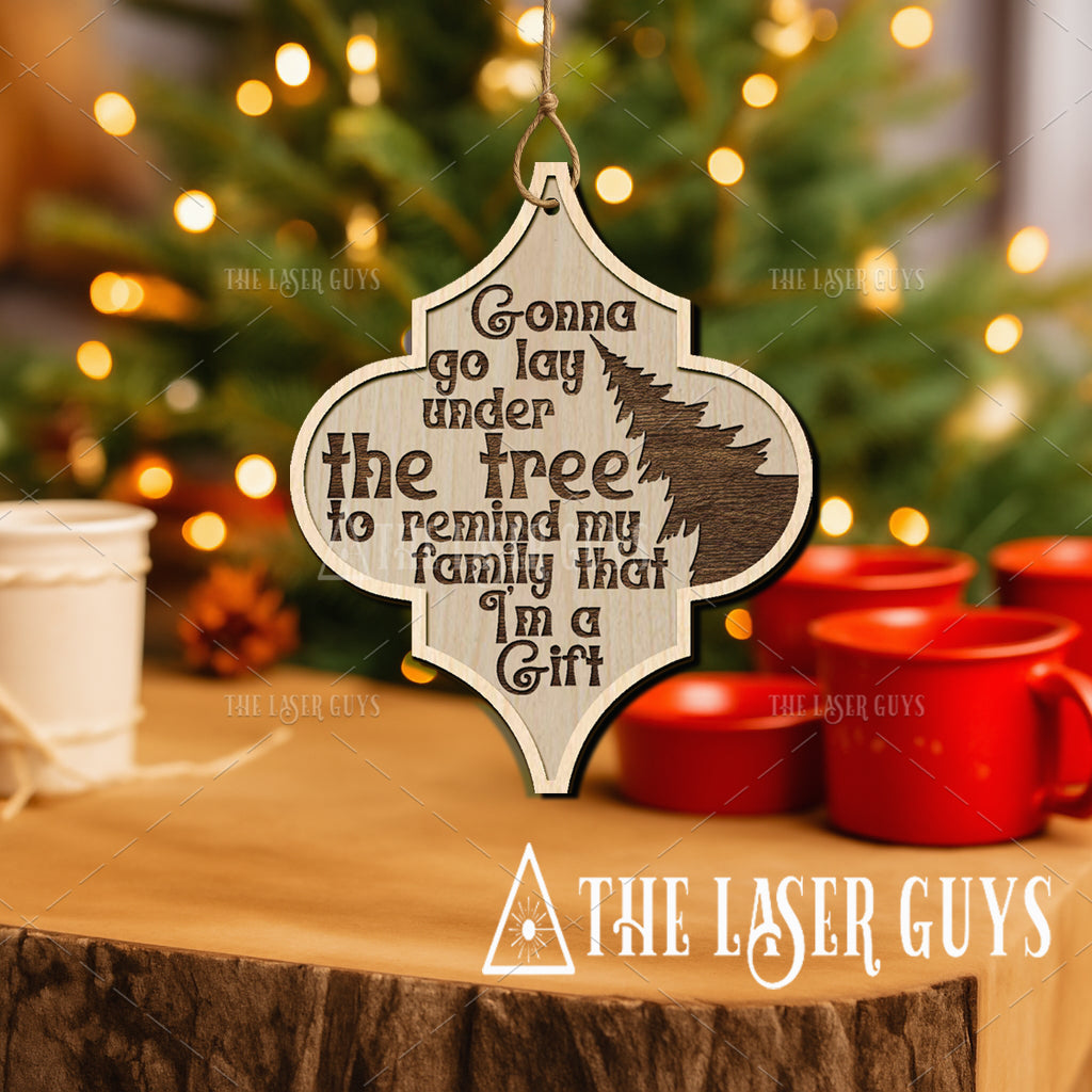 Add a playful touch to your holiday décor with this “Gonna Go Lay Under the Tree to Remind My Family That I’m a Gift” ornament. Made from sustainably sourced Baltic Birch, it features a natural wood finish with a detailed tree design and bold lettering. Measuring approximately 4" x 3.3" x 0.25, it comes ready to hang—just add your favorite ribbon or ornament hook. Whether hung on the tree, tied to a package, or given as a witty stocking stuffer, this ornament is sure to spark smiles all season long.