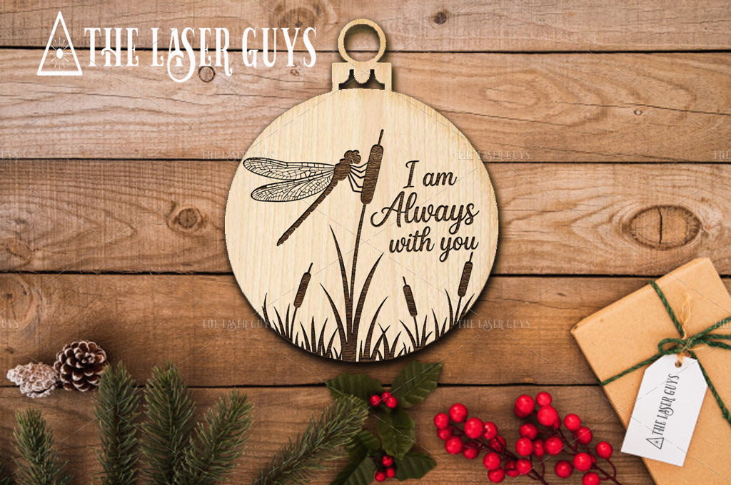 Crafted from sustainably sourced Baltic Birch, this ornament showcases a dragonfly resting gracefully among cattails. Measuring about 4" x 3.6" x 0.125", each piece is hand-sanded for a smooth natural finish and arrives ready to hang on your tree or tie onto a gift. A meaningful keepsake, it brings quiet comfort and serves as a gentle reminder of loved ones who remain close in spirit.