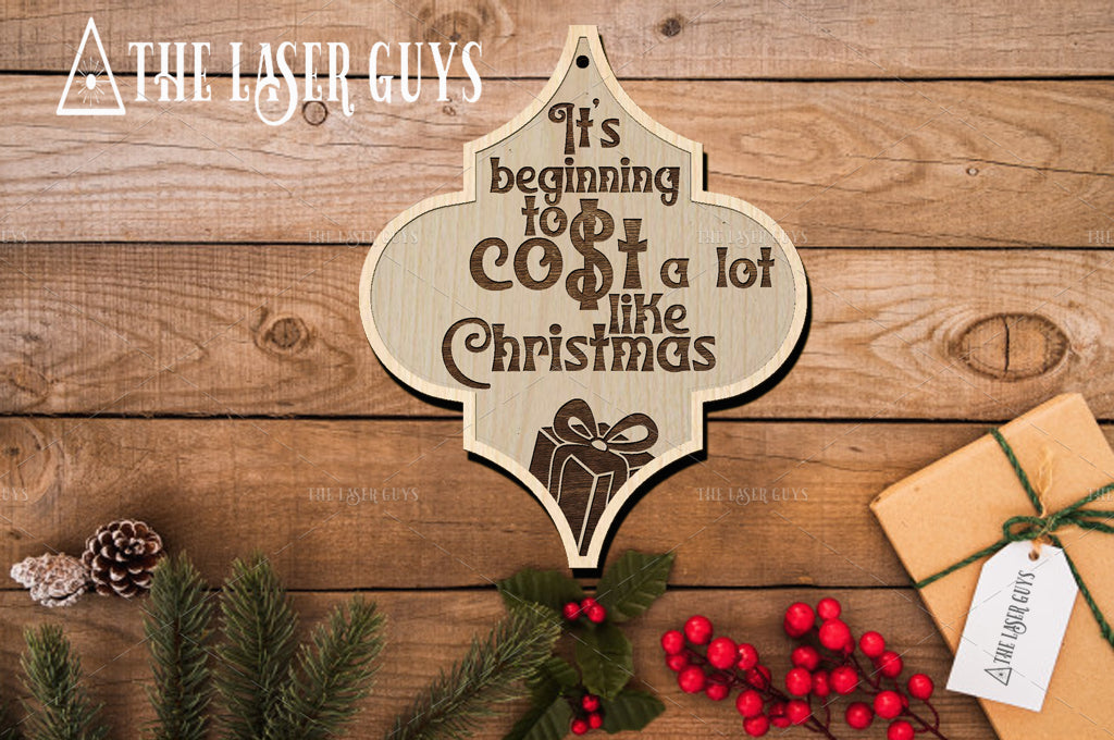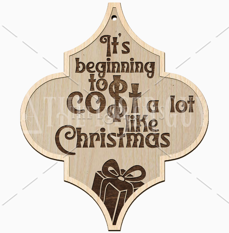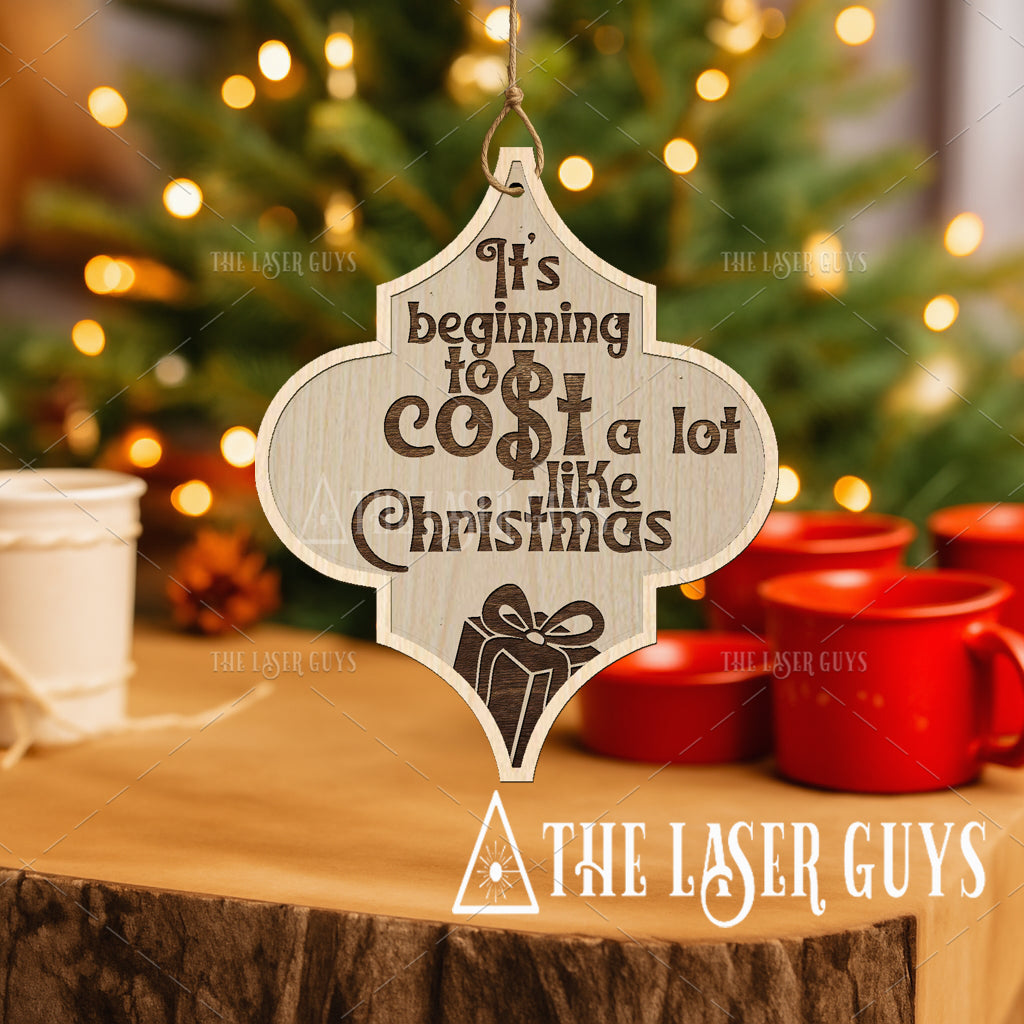 Made from sustainably sourced Baltic Birch, this ornament playfully reads “It’s beginning to cost a lot like Christmas” with a festive gift box design beneath. Measuring about 4" x 3.3" x 0.25", each piece is hand-sanded for a smooth natural finish and arrives ready to hang or tie onto a package. Both humorous and heartfelt, this keepsake makes a lighthearted addition to your tree or a perfect gift for someone who understands the holiday hustle.