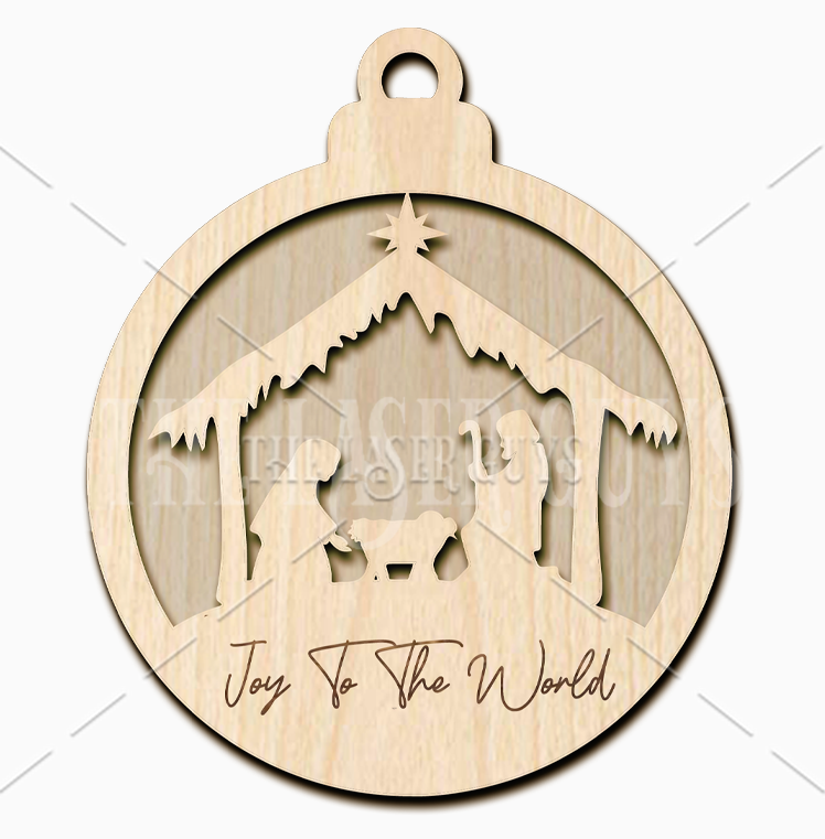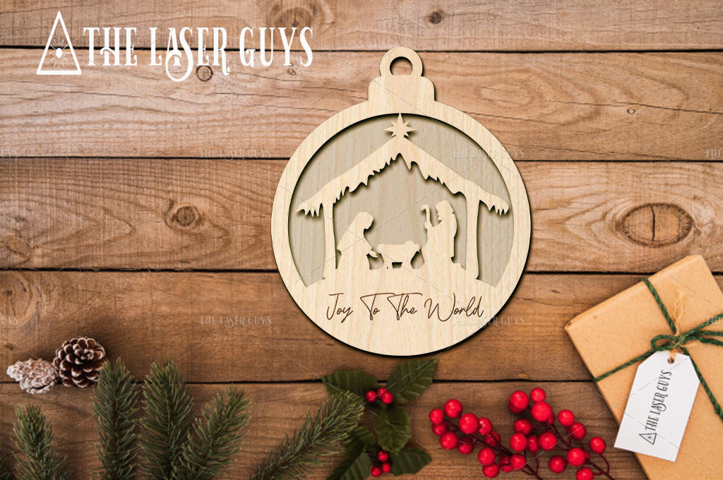 Crafted from sustainably sourced Baltic Birch, this ornament depicts the Holy Family in the stable beneath the shining star of Bethlehem. Measuring about 3.8" x 3.2" x 0.25", each piece is hand-sanded for a smooth natural finish and arrives ready to hang on your tree or tie onto a gift. A timeless addition to nativity décor, this keepsake makes a meaningful Christmas gift and a cherished reminder of the joy that fills the season.