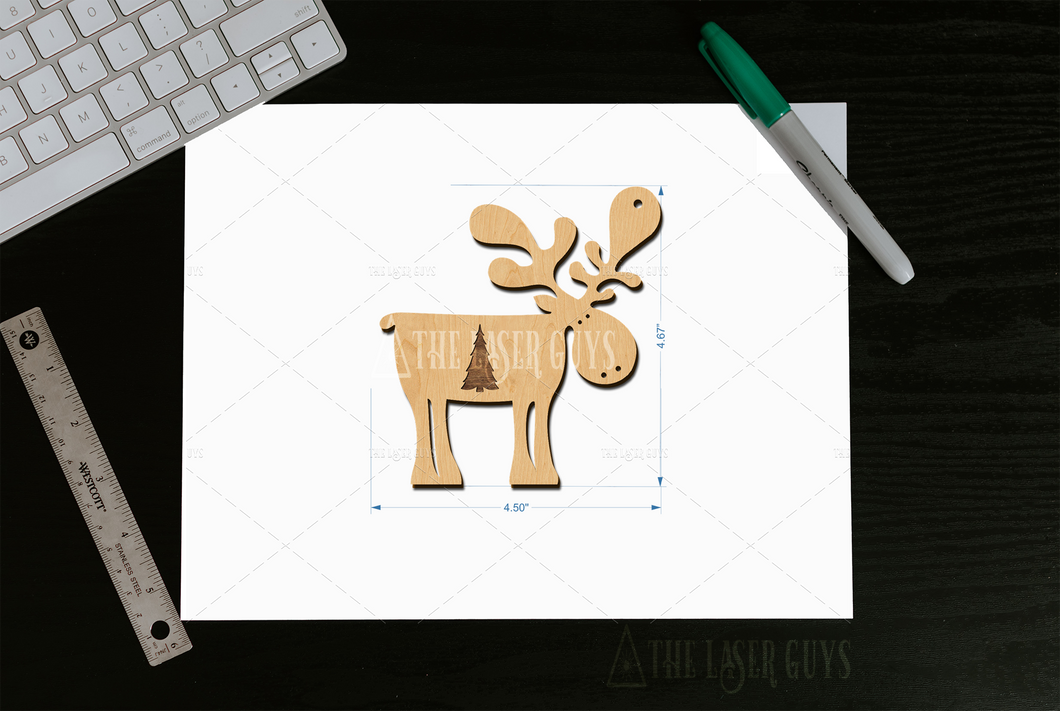 Bring back the magic of Christmas with this whimsical Moose with an engraved pine tree.