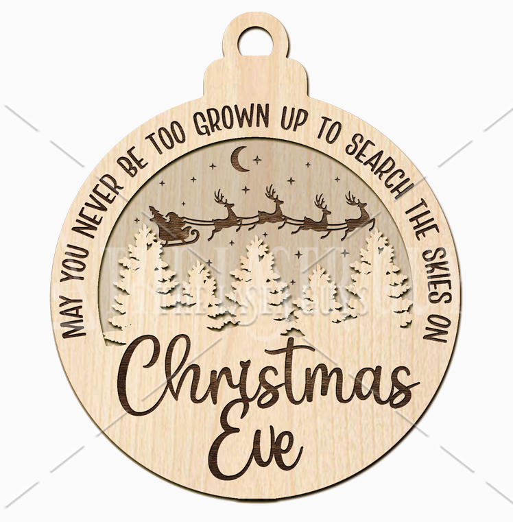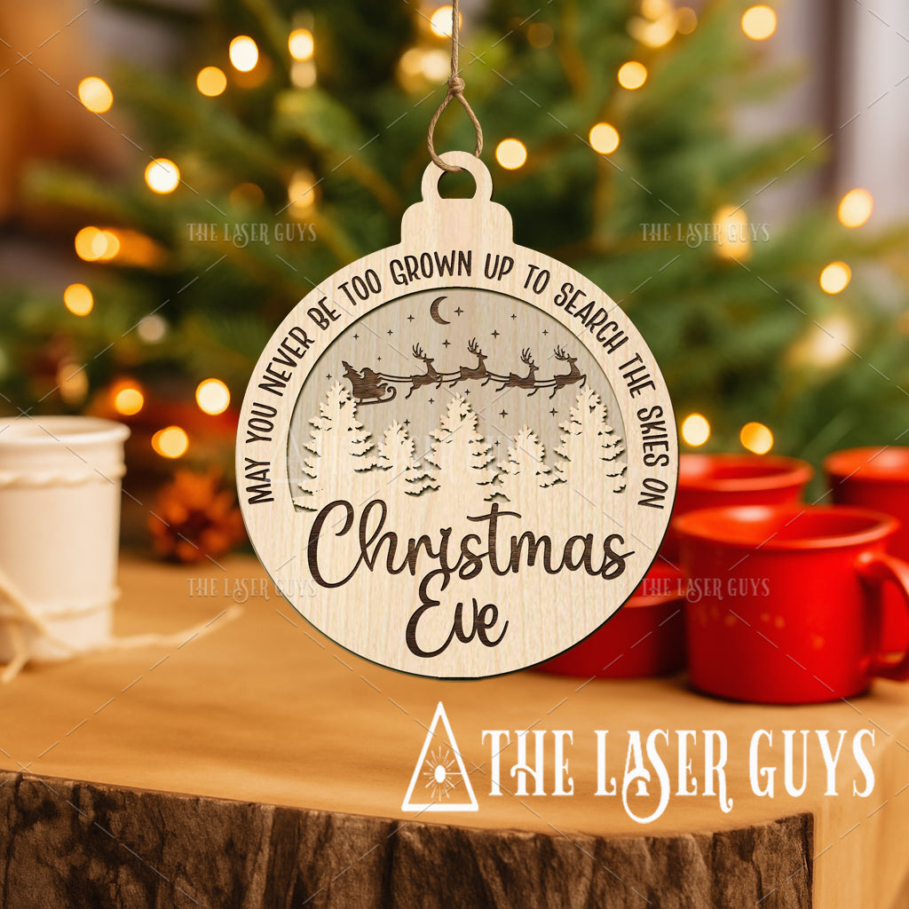 There’s a certain kind of magic in looking up on Christmas Eve, hoping to catch a glimpse of Santa’s sleigh as it streaks across the stars. This ornament reminds us that wonder has no age limit — may we never grow too old to search the skies, to dream, and to believe in the joy of Christmas night.