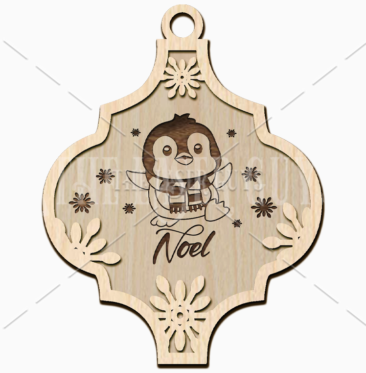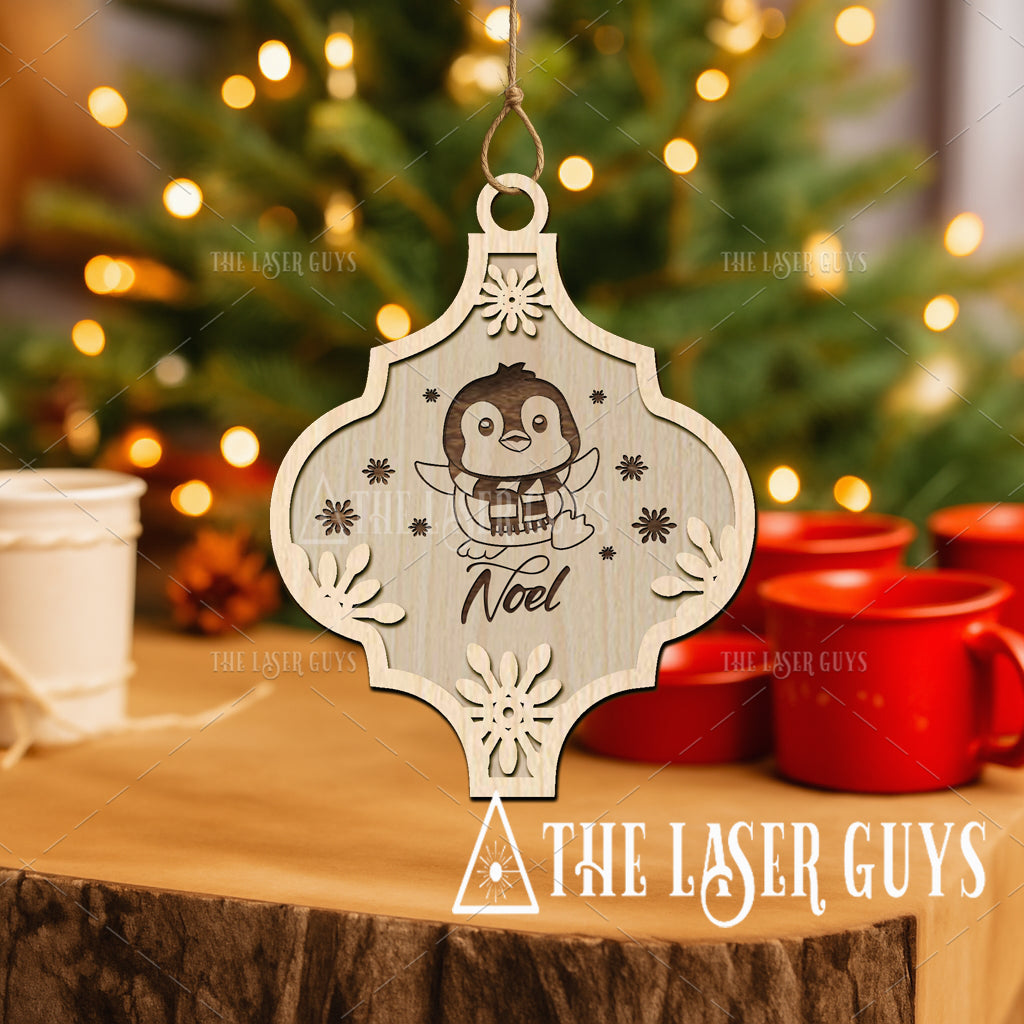 Crafted from sustainably sourced Baltic Birch, this ornament features an adorable penguin in a scarf surrounded by snowflakes and the word “Noel” in elegant script. Measuring about 4.5" x 3.9" x 0.25", each piece is hand-sanded for a smooth natural finish and arrives ready to hang on your tree or tie onto a gift. Perfect as a stocking stuffer or festive keepsake, this ornament adds playful charm and heartwarming joy to your holiday décor.