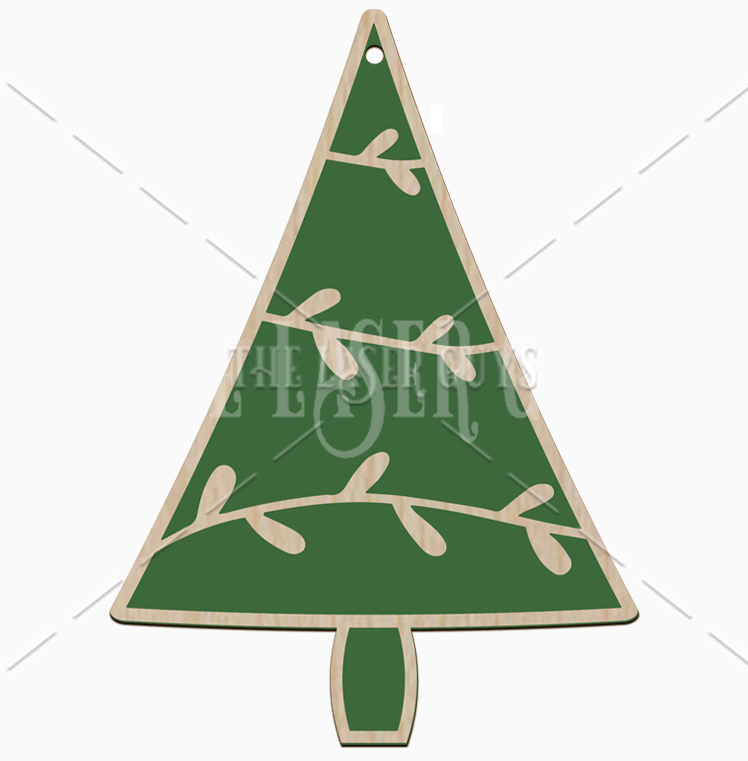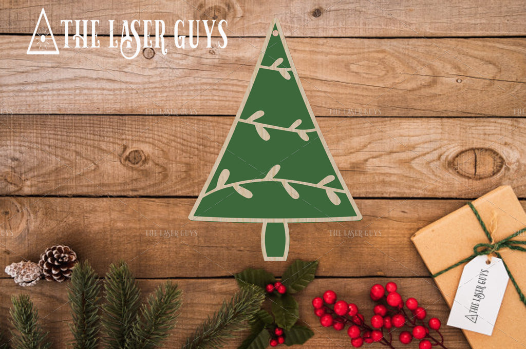 Crafted from sustainably sourced Baltic Birch, this ornament features a stylized evergreen tree accented with a minimal branch-like garland.