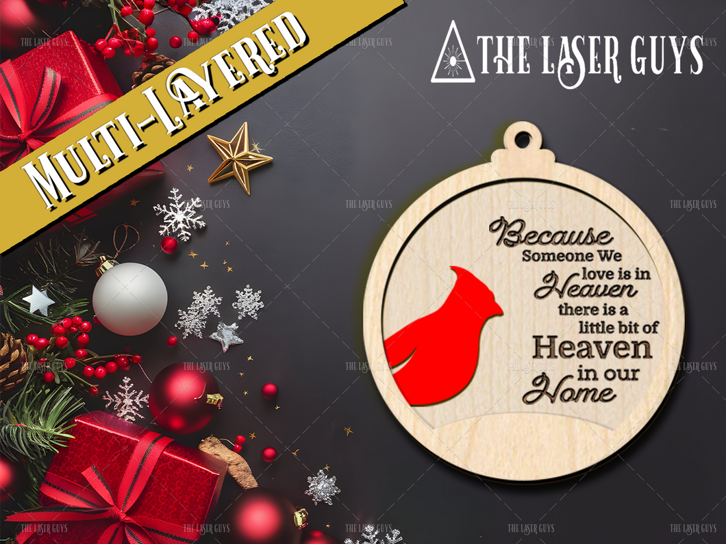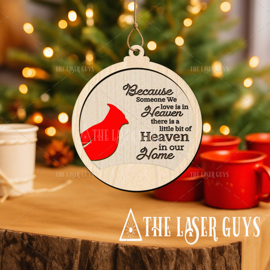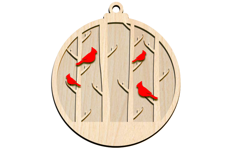 Crafted from sustainably sourced Baltic Birch, this layered ornament features delicate tree cutouts accented by vivid red cardinals. Measuring approximately 4" x 3.6" x 0.4", each piece is hand-sanded for a smooth natural finish and arrives ready to hang on your Christmas tree. A timeless keepsake, it makes a meaningful gift or a heartfelt addition to your own holiday décor, blending the beauty of nature with the warmth of tradition.