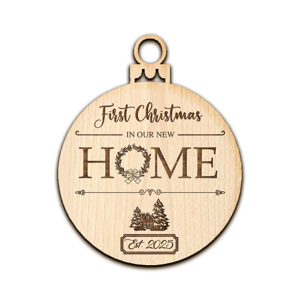 This charming keepsake ornament is a heartfelt way to celebrate your first Christmas in a new home. Crafted from sustainably sourced Baltic Birch, it features a natural wood finish and measures 4" x 3.2" x 0.125". Each piece is hand-sanded and ready to hang with your favorite ribbon or ornament hook. Whether displayed on your tree, tied to a gift, or saved as a treasured memento, it’s a beautiful reminder of where your story together began.