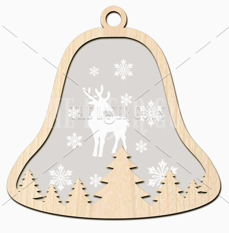 Crafted from sustainably sourced Baltic Birch with a frosted acrylic center, this ornament features a reindeer in a snowy woodland framed by a bell silhouette. Measuring about 3.0" x 3.0" x 0.25", each piece is hand-sanded for a smooth natural finish and arrives ready to hang on your tree or tie onto a gift. A perfect keepsake for nature lovers or anyone who cherishes traditional holiday décor, it brings classic charm and quiet elegance to your celebrations.